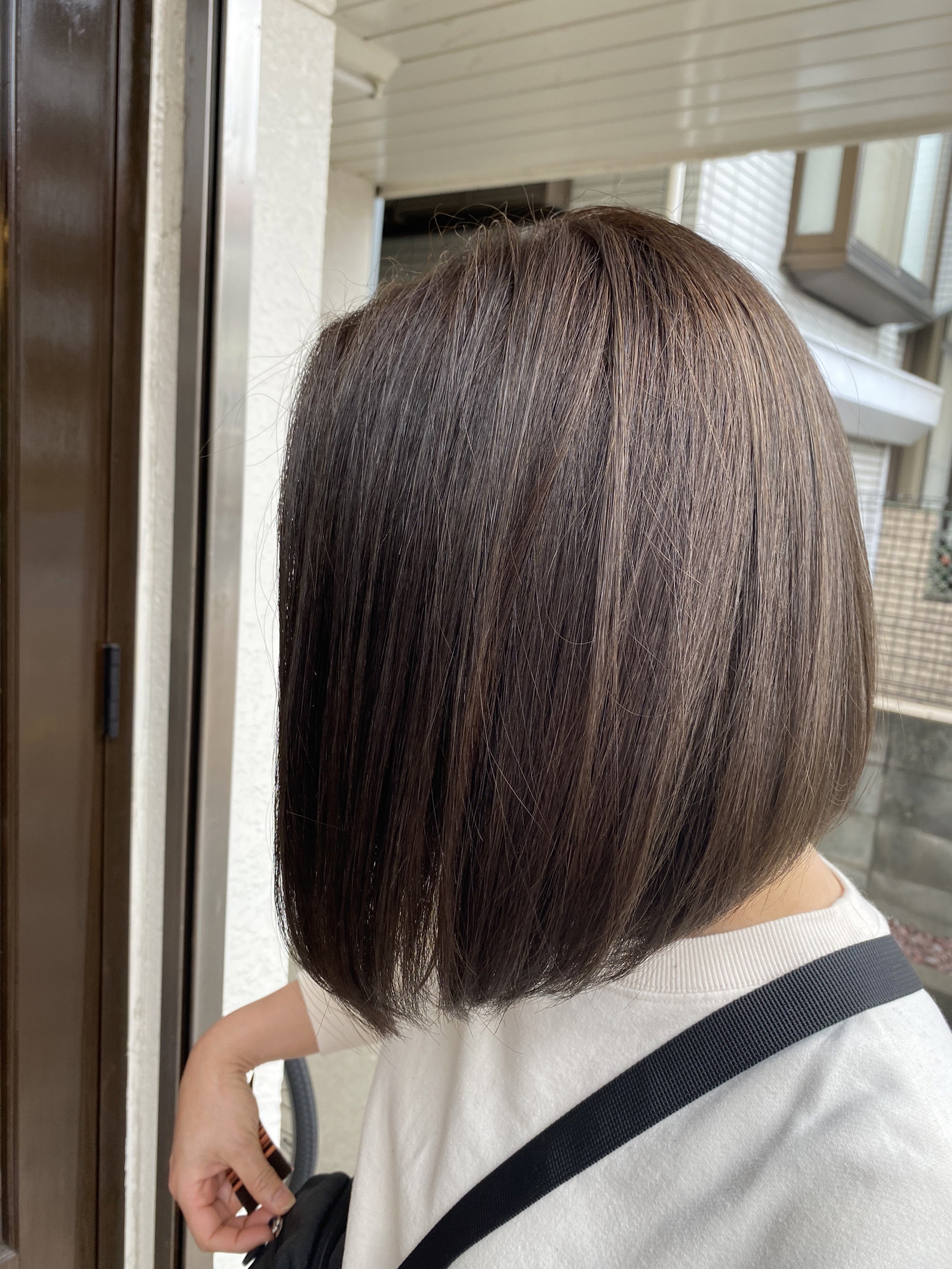 次回はハイライトが伸びた所の染め直しと、梅雨に入ってくるため美髪縮毛矯正リジェーネのご予約をされました。