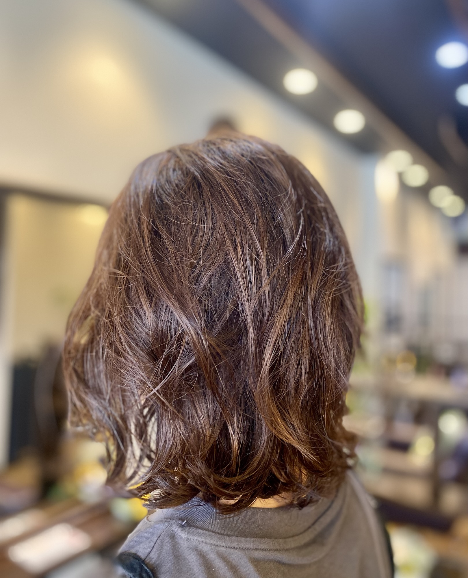 今回のお客様は、地毛を活かしたウェーブに秋色を➕ON